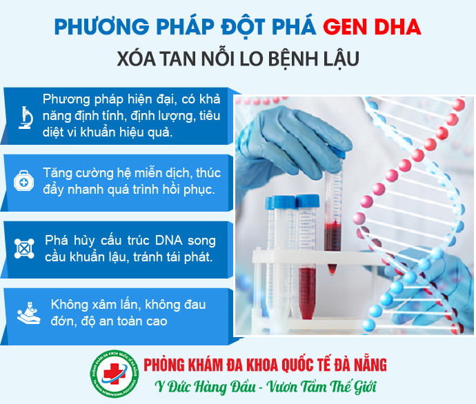 Tại Phòng Khám Chuyên Bệnh Xã Hội Đà Nẵng các bác sĩ áp dụng phương pháp đột phá Gen DHA để chữa lậu. Đây chính là phương pháp chữa bệnh lậu phổ biến nhất hiện nay.